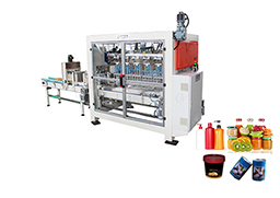 自動旋蓋機具有自動理蓋、上蓋、旋蓋功能。瓶子直線進入、連續旋蓋。