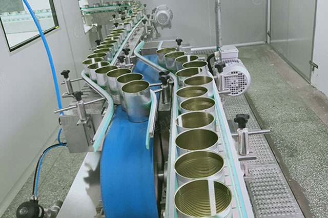 空罐卸垛機(jī)——磁力洗罐機(jī)——鼓泡清洗機(jī)——預(yù)煮機(jī)——流槽冷卻機(jī)——量杯灌裝機(jī)——淋湯機(jī)——封罐機(jī)——裝卸籠機(jī)——滾杠巴氏殺菌機(jī)——風(fēng)刀——臥式貼標(biāo)機(jī)——開(kāi)箱機(jī)——裝箱機(jī)——封箱機(jī)——紙箱碼垛機(jī)