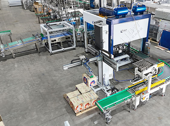 單立柱碼垛機(jī):單立柱碼垛機(jī)將封好的紙箱按照一定的排列方式和層數(shù)進(jìn)行碼垛。這一步驟自動(dòng)化程度高,能夠大幅提高倉儲(chǔ)效率,減少人工搬運(yùn)成本,并為后續(xù)的物流運(yùn)輸提供便利。