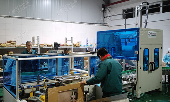紅豆罐頭食品的加工工藝中,需用自動洗罐、罐裝、封口、自動洗罐、風干、開箱機、裝箱、封箱等工藝,依據用戶廠房倉庫的面積和產量、罐型等特性,我廠技術員參觀考察和用戶交流后,項目確定選用自動洗罐機、風干、自動開箱機、裝箱、封箱等,該江蘇紅豆罐頭食品包裝生產線選用自動化生產線設備,機架選用304不銹鋼,西門子PLC電控PLC觸摸屏、使用方便、精度高。